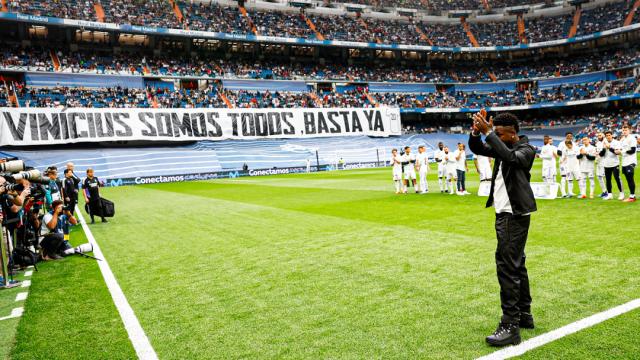 第20分钟,维尼修斯的名字响彻伯纳乌,全场球迷以此表达对球员的声援。